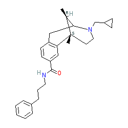 | SMILES | C[C@H]1C2Cc3ccc(C(=O)NCCCc4ccccc4)cc3[C@@]1(C)CCN2CC1CC1 |