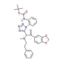 | SMILES | CN(CCc1ccccc1)C(C(=O)c1ccc2c(c1)OCO2)c1nnnn1-c1ccccc1NC(=O)OC(C)(C)C |
