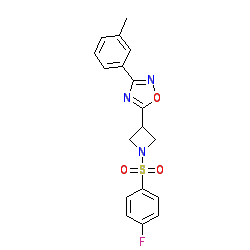 | SMILES | Cc1cccc(-c2noc(C3CN(S(=O)(=O)c4ccc(F)cc4)C3)n2)c1 |