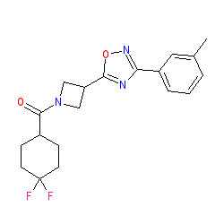 | SMILES | Cc1cccc(-c2noc(C3CN(C(=O)C4CCC(F)(F)CC4)C3)n2)c1 |