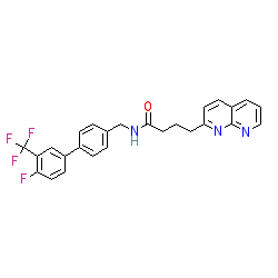 | SMILES | O=C(CCCc1ccc2cccnc2n1)NCc1ccc(-c2ccc(F)c(C(F)(F)F)c2)cc1 |