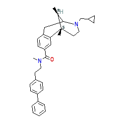 | SMILES | C[C@H]1C2Cc3ccc(C(=O)N(C)CCc4ccc(-c5ccccc5)cc4)cc3[C@@]1(C)CCN2CC1CC1 |