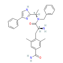 | SMILES | Cc1cc(C(N)=O)cc(C)c1C[C@H](N)C(=O)N(Cc1ccccc1)[C@@H](C)c1nc(-c2ccccc2)c[nH]1 |
