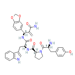| SMILES | C=C(C(N)=O)[C@@H](NC(=O)[C@H](Cc1c[nH]c2ccccc12)NC(=O)[C@@H]1CCCN1C(=O)[C@@H](N)Cc1ccc(O)cc1)c1ccc2c(c1)OCO2 |