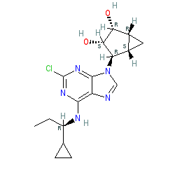 | SMILES | CC[C@@H](Nc1nc(Cl)nc2c1ncn2[C@H]1[C@H](O)[C@H](O)[C@@H]2C[C@@H]21)C1CC1 |