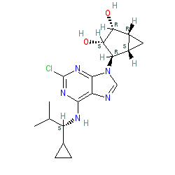 | SMILES | CC(C)[C@H](Nc1nc(Cl)nc2c1ncn2[C@H]1[C@H](O)[C@H](O)[C@@H]2C[C@@H]21)C1CC1 |