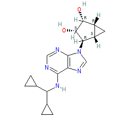 | SMILES | O[C@@H]1[C@H](O)[C@@H]2C[C@@H]2[C@H]1n1cnc2c(NC(C3CC3)C3CC3)ncnc21 |