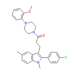 | SMILES | COc1ccccc1N1CCN(C(=O)CCc2c(-c3ccc(Cl)cc3)n(C)c3ccc(C)cc23)CC1 |