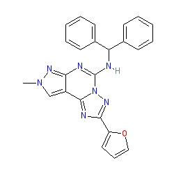 | SMILES | Cn1cc2c(nc(NC(c3ccccc3)c3ccccc3)n3nc(-c4ccco4)nc23)n1 |