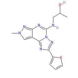| SMILES | CC(O)CNc1nc2nn(C)cc2c2nc(-c3ccco3)nn12 |