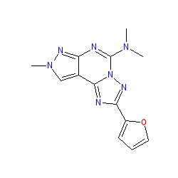 | SMILES | CN(C)c1nc2nn(C)cc2c2nc(-c3ccco3)nn12 |