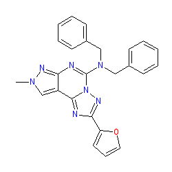 | SMILES | Cn1cc2c(nc(N(Cc3ccccc3)Cc3ccccc3)n3nc(-c4ccco4)nc23)n1 |