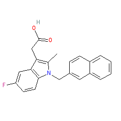 | SMILES | Cc1c(CC(=O)O)c2cc(F)ccc2n1Cc1ccc2ccccc2c1 |