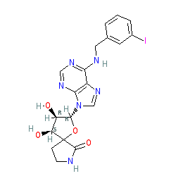 | SMILES | O=C1NCCC12O[C@@H](n1cnc3c(NCc4cccc(I)c4)ncnc31)[C@H](O)[C@@H]2O |