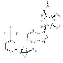 | SMILES | OC[C@H]1O[C@@H](n2cnc3c(N[C@@H]4C[C@H]4c4cccc(C(F)(F)F)c4)ncnc32)[C@H](O)[C@@H]1O |