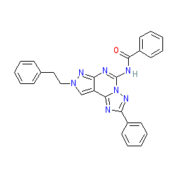 | SMILES | O=C(Nc1nc2nn(CCc3ccccc3)cc2c2nc(-c3ccccc3)nn12)c1ccccc1 |