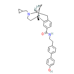 | SMILES | C[C@H]1[C@H]2Cc3ccc(C(=O)NCCc4ccc(-c5ccc(O)cc5)cc4)cc3[C@]1(C)CCN2CC1CC1 |