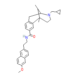 | SMILES | COc1ccc2cc(CCNC(=O)c3ccc4c(c3)C3(C)CCN(CC5CC5)C(C4)C3C)ccc2c1 |