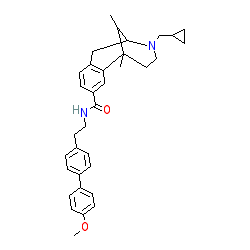 | SMILES | COc1ccc(-c2ccc(CCNC(=O)c3ccc4c(c3)C3(C)CCN(CC5CC5)C(C4)C3C)cc2)cc1 |