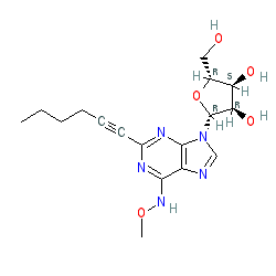 | SMILES | CCCCC#Cc1nc(NOC)c2ncn([C@@H]3O[C@H](CO)[C@@H](O)[C@H]3O)c2n1 |