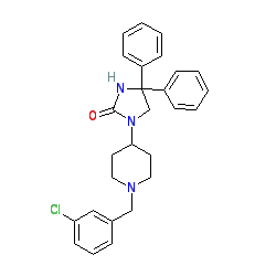 | SMILES | O=C1NC(c2ccccc2)(c2ccccc2)CN1C1CCN(Cc2cccc(Cl)c2)CC1 |