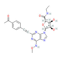| SMILES | CCNC(=O)[C@H]1O[C@@H](n2cnc3c(NOC)nc(C#Cc4ccc(C(C)=O)cc4)nc32)[C@H](O)[C@@H]1O |