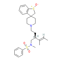 | SMILES | C/C=C(\C)[C@H](CCN1CCC2(CC1)C[S+]([O-])c1ccccc12)CN(C)S(=O)(=O)c1ccccc1 |