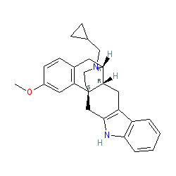 | SMILES | COc1ccc2c(c1)[C@]13CCN(CC4CC4)[C@H](C2)[C@@H]1Cc1c([nH]c2ccccc12)C3 |