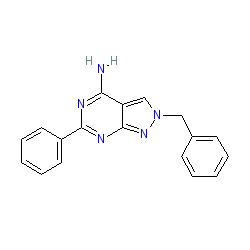 | SMILES | Nc1nc(-c2ccccc2)nc2nn(Cc3ccccc3)cc12 |