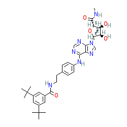 | SMILES | CNC(=O)[C@H]1O[C@@H](n2cnc3c(Nc4ccc(CCNC(=O)c5cc(C(C)(C)C)cc(C(C)(C)C)c5)cc4)ncnc32)[C@H](O)[C@@H]1O |