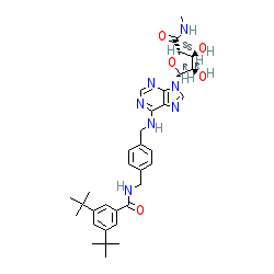 | SMILES | CNC(=O)[C@H]1O[C@@H](n2cnc3c(NCc4ccc(CNC(=O)c5cc(C(C)(C)C)cc(C(C)(C)C)c5)cc4)ncnc32)[C@H](O)[C@@H]1O |