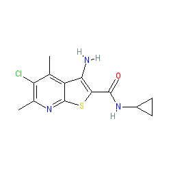 | SMILES | Cc1nc2sc(C(=O)NC3CC3)c(N)c2c(C)c1Cl |