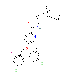 | SMILES | O=C(NC1CC2CCC1C2)c1cccc(Cc2cc(Cl)ccc2OCc2ccc(Cl)cc2F)n1 |