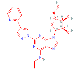 | SMILES | CCNc1nc(-n2cc(-c3ccccn3)cn2)nc2c1ncn2[C@@H]1O[C@H](CO)[C@@H](O)[C@H]1O |