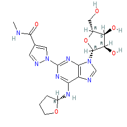 | SMILES | CNC(=O)c1cnn(-c2nc(N[C@H]3CCCO3)c3ncn([C@@H]4O[C@H](CO)[C@@H](O)[C@H]4O)c3n2)c1 |