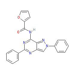 | SMILES | O=C(Nc1nc(-c2ccccc2)nc2cn(-c3ccccc3)nc12)c1ccco1 |