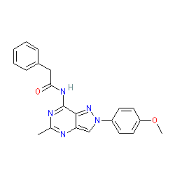 | SMILES | COc1ccc(-n2cc3nc(C)nc(NC(=O)Cc4ccccc4)c3n2)cc1 |