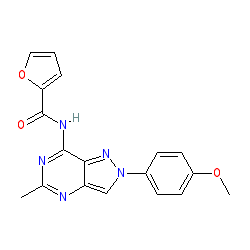 | SMILES | COc1ccc(-n2cc3nc(C)nc(NC(=O)c4ccco4)c3n2)cc1 |