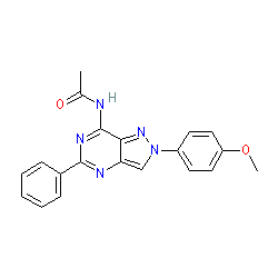 | SMILES | COc1ccc(-n2cc3nc(-c4ccccc4)nc(NC(C)=O)c3n2)cc1 |