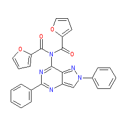 | SMILES | O=C(c1ccco1)N(C(=O)c1ccco1)c1nc(-c2ccccc2)nc2cn(-c3ccccc3)nc12 |