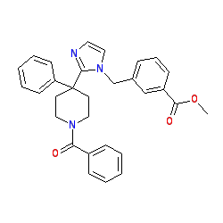 | SMILES | COC(=O)c1cccc(Cn2ccnc2C2(c3ccccc3)CCN(C(=O)c3ccccc3)CC2)c1 |