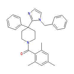 | SMILES | Cc1cc(C)c(C(=O)N2CCC(c3ccccc3)(c3nccn3Cc3ccccc3)CC2)c(C)c1 |