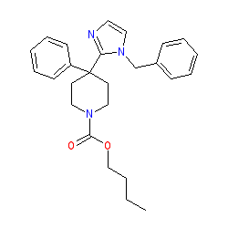 | SMILES | CCCCOC(=O)N1CCC(c2ccccc2)(c2nccn2Cc2ccccc2)CC1 |