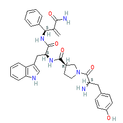 | SMILES | C=C(C(N)=O)[C@@H](NC(=O)[C@H](Cc1c[nH]c2ccccc12)NC(=O)[C@@H]1CCN(C(=O)[C@@H](N)Cc2ccc(O)cc2)C1)c1ccccc1 |