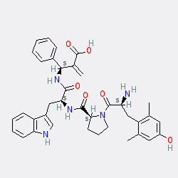| SMILES | C=C(C(=O)O)[C@@H](NC(=O)[C@H](Cc1c[nH]c2ccccc12)NC(=O)[C@@H]1CCCN1C(=O)[C@@H](N)Cc1c(C)cc(O)cc1C)c1ccccc1 |