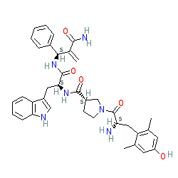 | SMILES | C=C(C(N)=O)[C@@H](NC(=O)[C@H](Cc1c[nH]c2ccccc12)NC(=O)[C@H]1CCN(C(=O)[C@@H](N)Cc2c(C)cc(O)cc2C)C1)c1ccccc1 |
