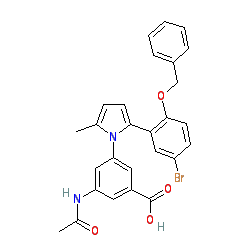 | SMILES | CC(=O)Nc1cc(C(=O)O)cc(-n2c(C)ccc2-c2cc(Br)ccc2OCc2ccccc2)c1 |