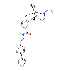| SMILES | C[C@H]1C2Cc3ccc(C(=O)NCCc4ccc(-c5ccccc5)nc4)cc3[C@@]1(C)CCN2CC1CC1 |