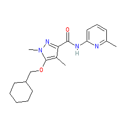 | SMILES | Cc1cccc(NC(=O)c2nn(C)c(OCC3CCCCC3)c2C)n1 |
