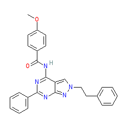 | SMILES | COc1ccc(C(=O)Nc2nc(-c3ccccc3)nc3nn(CCc4ccccc4)cc23)cc1 |
